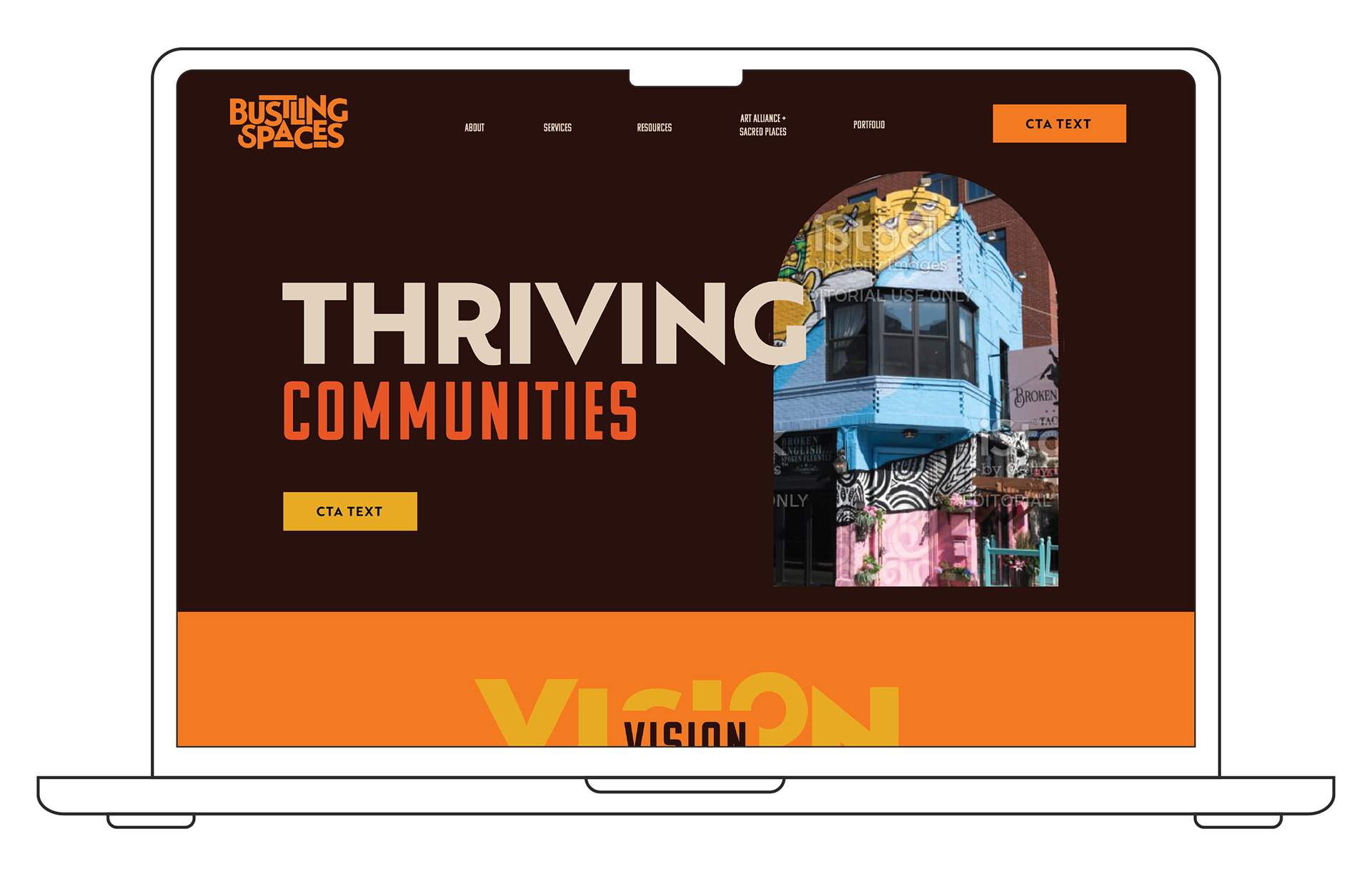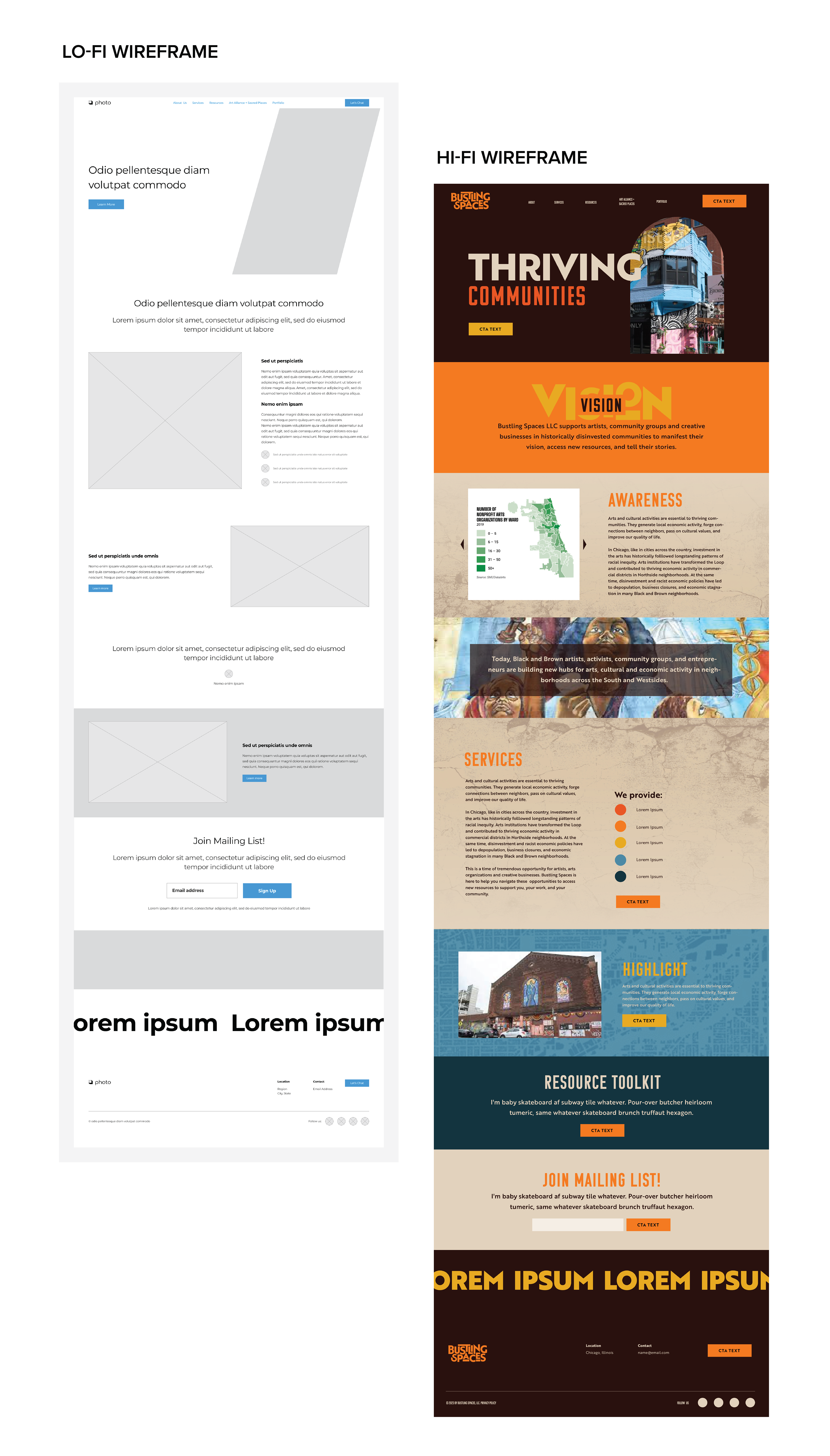 Alongside the identity, the website experience was designed to provide clarity, accessibility, and storytelling flexibility. The digital presence allows Bustling Spaces to more effectively showcase its programs, partnerships, and community-driven work. Together, the brand and web design establish a confident and recognizable presence aligned with the organization’s role as a supporter and amplifier of local creativity.