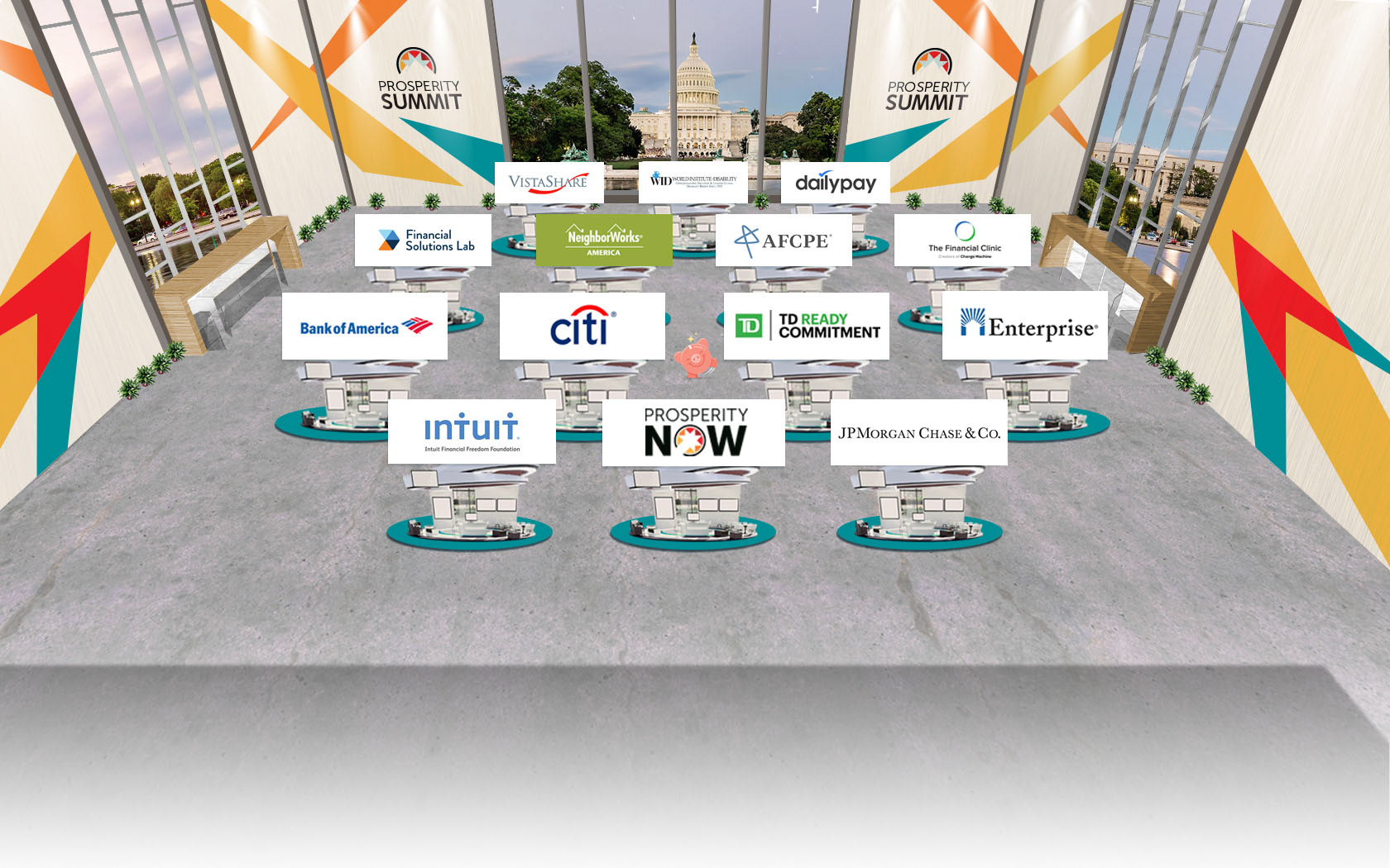Due to the COVID-19 pandemic, Prosperity Now hosted a completely virtual event for their biennial conference in 2020. I was responsible for designing and building our conference website (CVENT), social media marketing materials, digital ads, etc., heavily inspired by the existing conference logo and Prosperity Now branding guide. With the pivot to a virtual event, I also collaborated with the design team to create the conference’s virtual environment on 6Connect. This entailed re-imagining and transferring branding elements to various virtual rooms and booths.